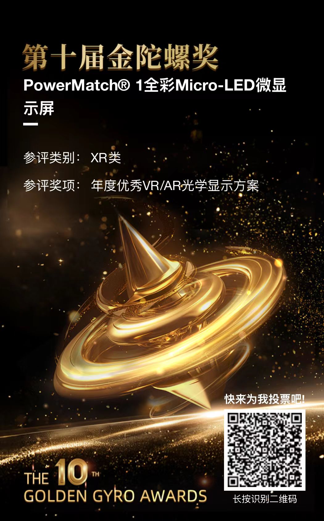 即日起,VR陀螺将对参评的优质企业/游戏项目进行精选展示,本次展示的是:镭昱-PowerMatch® 1全彩Micro-LED微显示屏