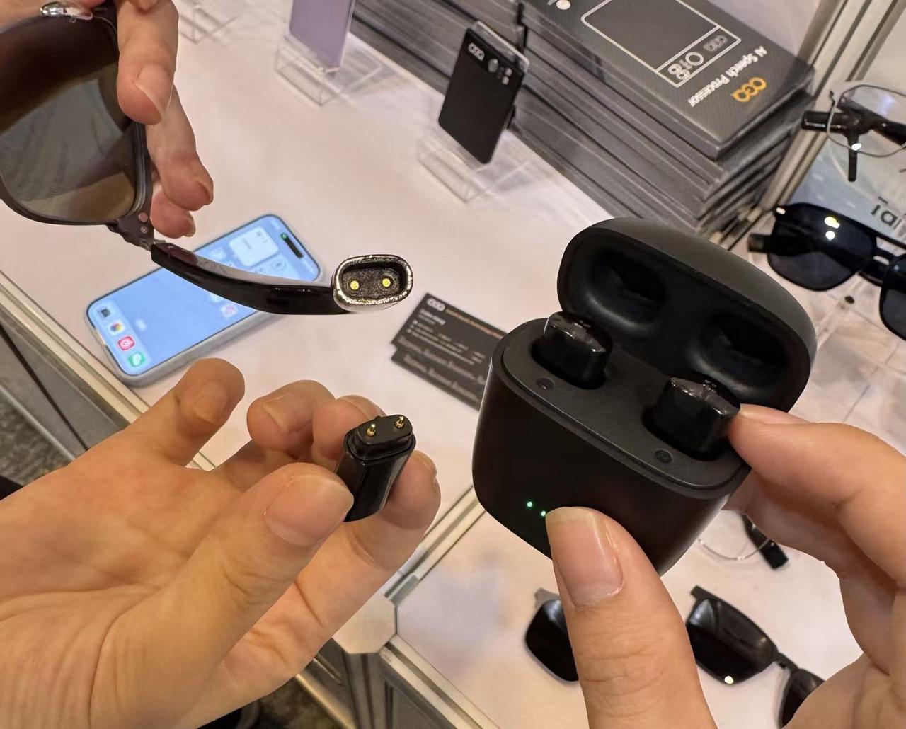 续航解决方案:以南北智造为代表的厂商展示了镜腿电池可插拔设计,并配备了类似 TWS 耳机的便携充电舱。这种模块化设计巧妙地解决了可穿戴设备的续航焦虑,与 INMO GO3 等品牌的设计思路异曲同工,但在形态上具有一定差异化。
