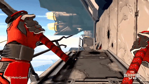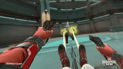 本作比较明显的一个缺点是手感,无论枪械射击还是近战劈砍都缺乏足够的命中反馈和振动反馈,而且近战武器判定失败、穿模等情况时有发生。VR游戏领域已有《阿斯加德之怒》《蝙蝠侠 阿卡姆之影》等Meta自家旗下的优秀作品珠玉在前,《死侍VR》的手感没能达到一线水平令人遗憾。