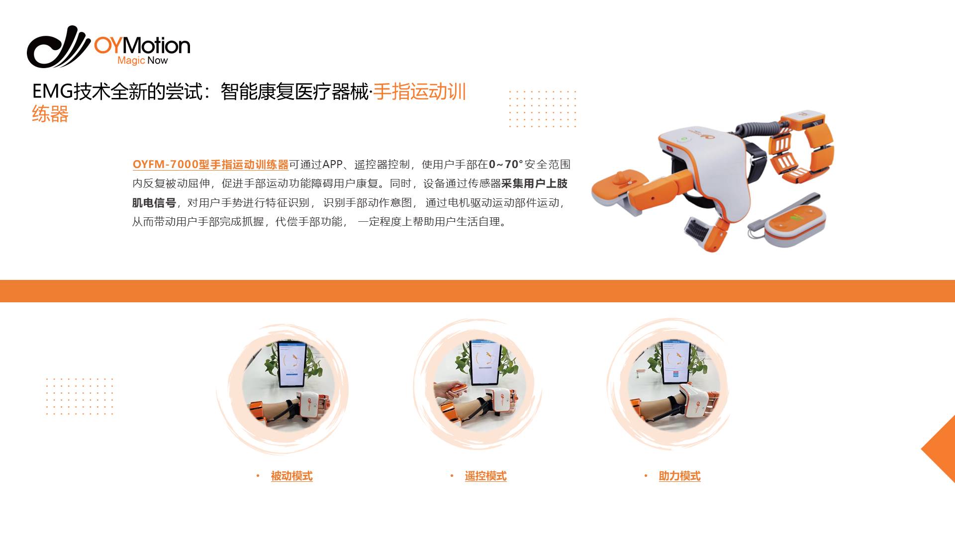 这是刚才看到的手指运动训练器。目前我们仍然深耕康复领域,肌电本身也可用于评估肌肉力量、识别运动模式等,我们正将其落地到各种康复场景中。