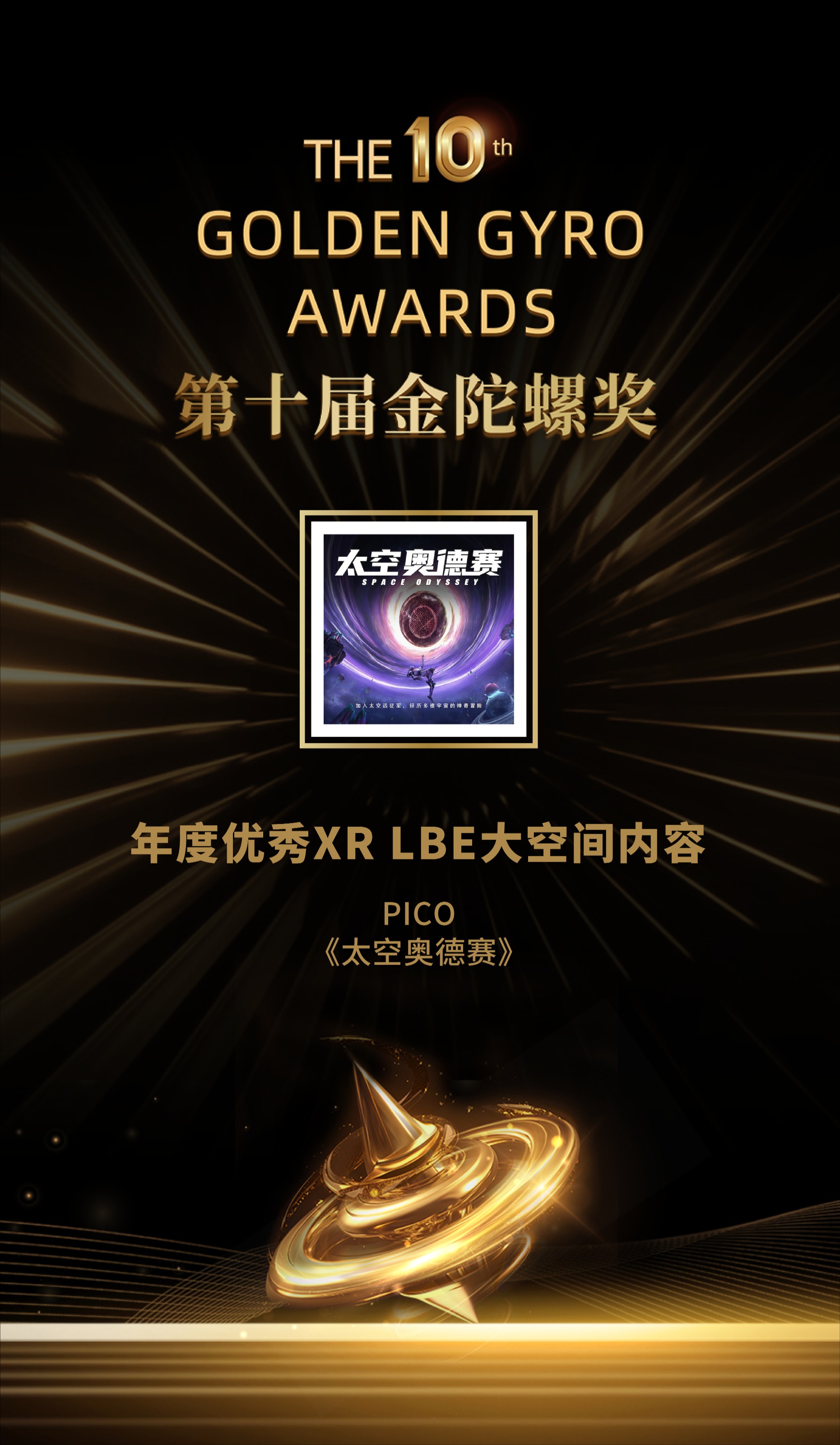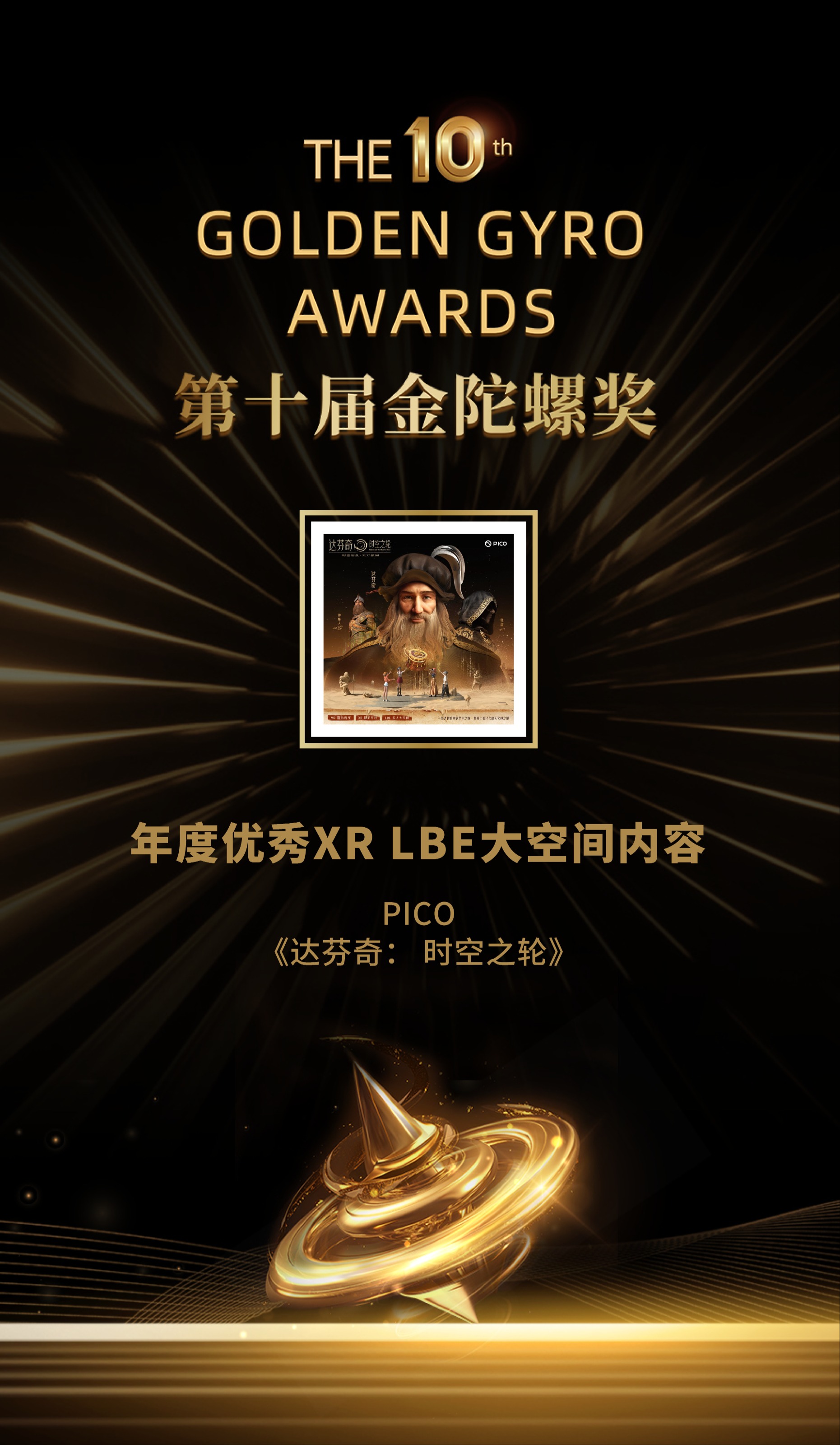 经历为期3个月的线上投票、专家评审,PICO 《太空奥德赛》《达芬奇·时空之轮》荣获第十届金陀螺奖“年度优秀XR LBE大空间内容”。