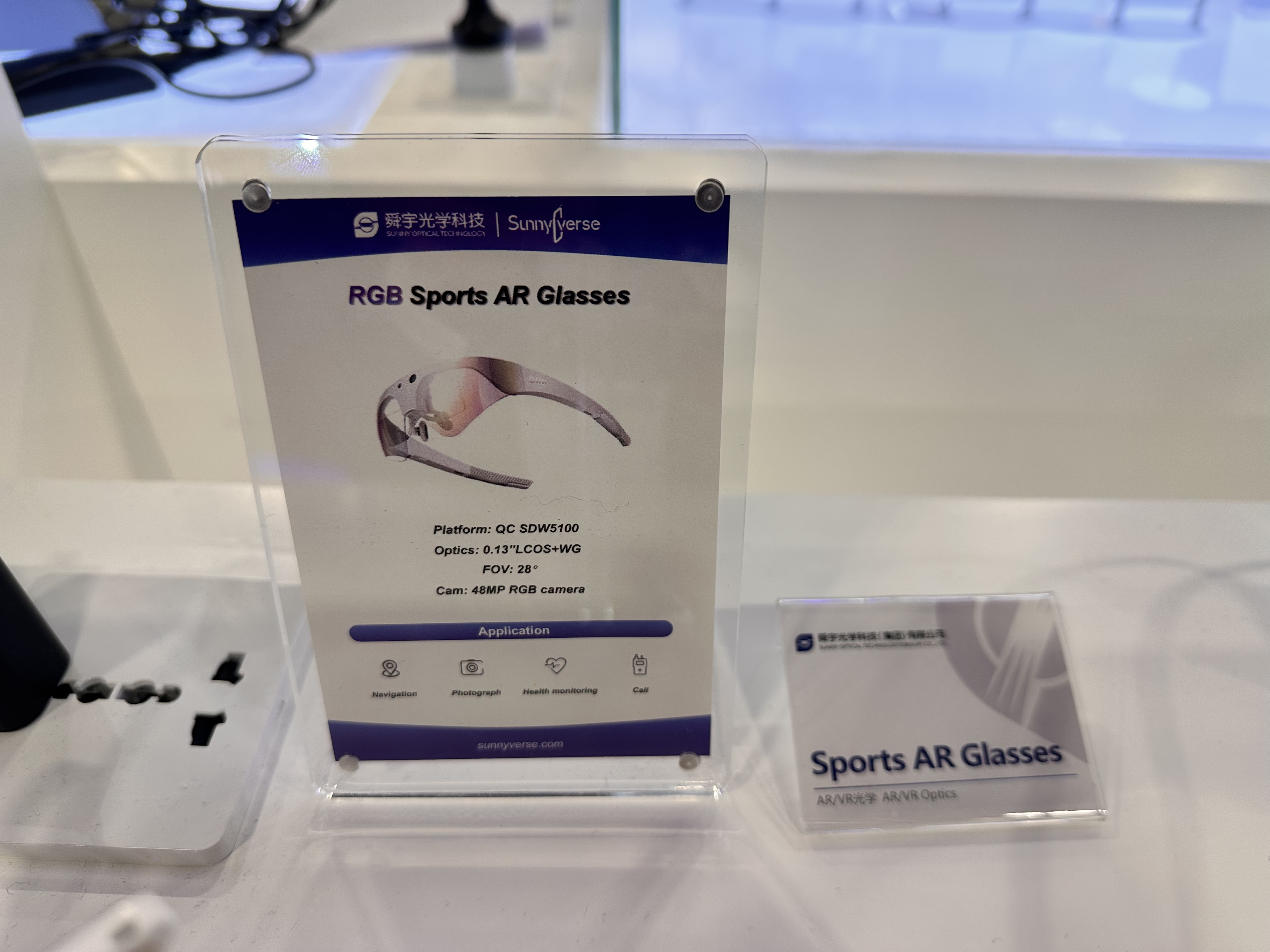 当地时间1月6日-9日,VR陀螺现场消息,第59届全球消费电子展CES2026在美国拉斯维加斯举办,据了解本次展会汇集了来自全球的4000多家展商,涵盖衣食住行娱乐各方面消费电子产品。展会上,舜宇光学展示了其最新的参考设计——RGB sports AR Glasses。