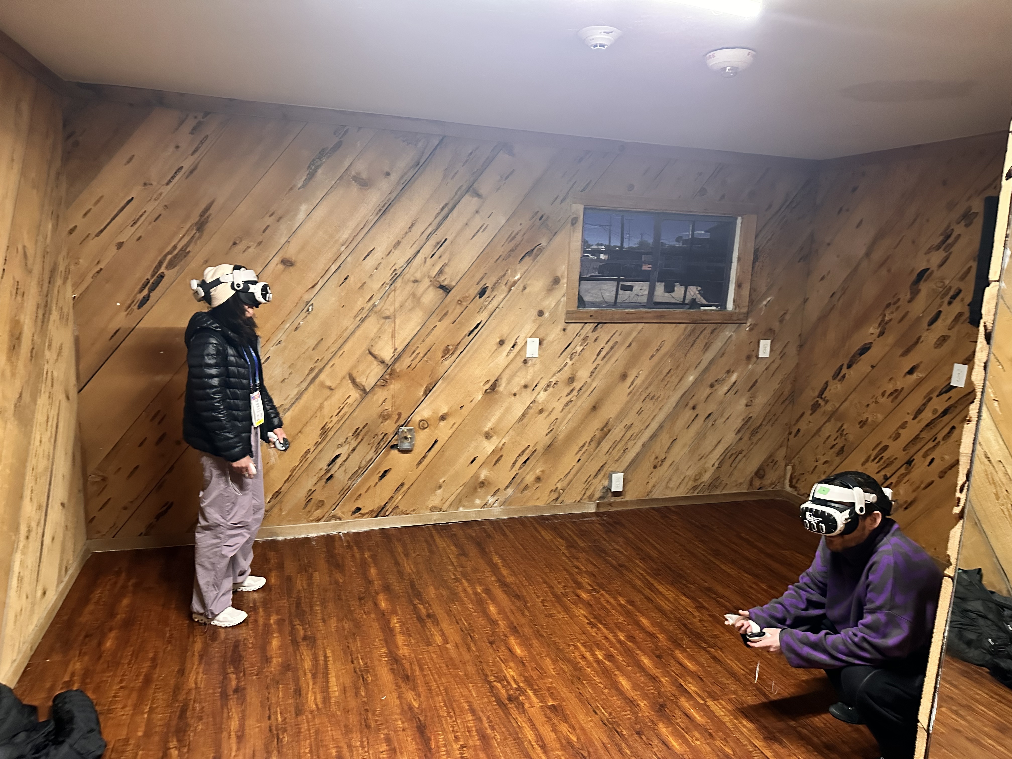 当地时间1月6日-9日,VR陀螺现场消息,第59届全球消费电子展CES2026在美国拉斯维加斯举办,期间海外VR游戏团队在拉斯维加斯的密室逃脱线下店内展示了其最新的VR大空间游戏《Heroes Together》。