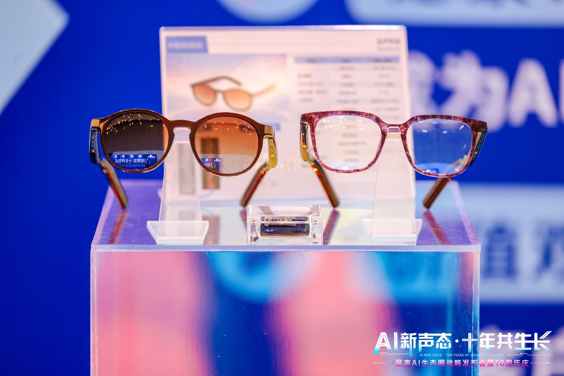 在本次活动上,品声科技带来了AI音频眼镜、AI运动眼镜、AI光波导眼镜、AI耳机、AI玩具、AI戒指和AI鼠标等诸多智能硬件产品解决方案。