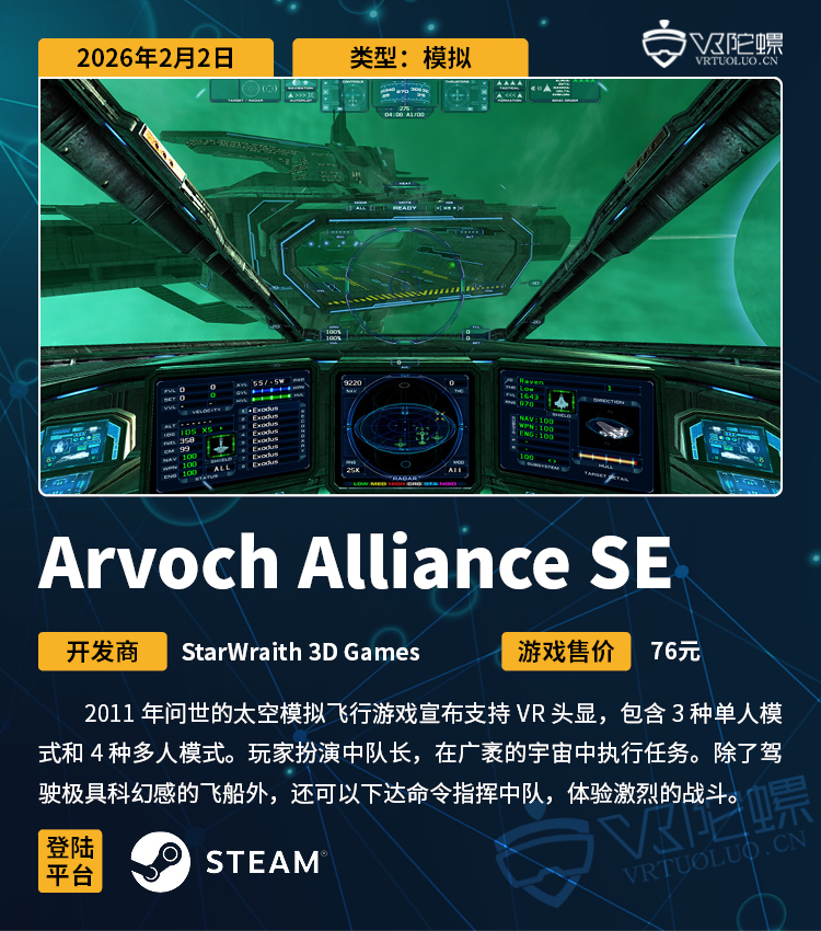 VR游戏周报·第180期,统计1月30日~2月5日期间上线的VR游戏,新作介绍共计9款,后文按照发售时间排序。截至2026年2月5日,各主要VR平台的内容数量如下: