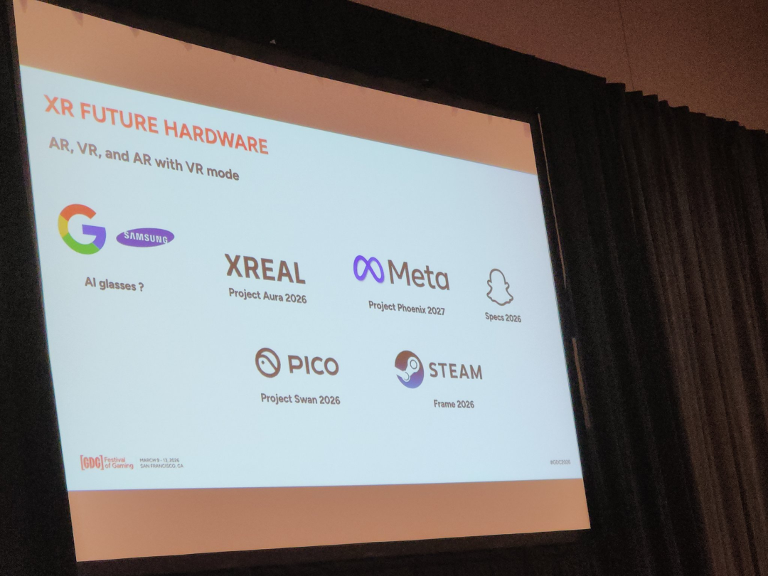 大会吸引了全球400多家科技及游戏厂商参与,腾讯、谷歌、苹果、英伟达、Meta、索尼、微软等亮相。这次GDC 2026,中国VR内容工作室「视界任意门」团队也受邀参加了Steam相关活动,同时看到了Meta在今年GDC期间释放出来的一系列新信号与新趋势。