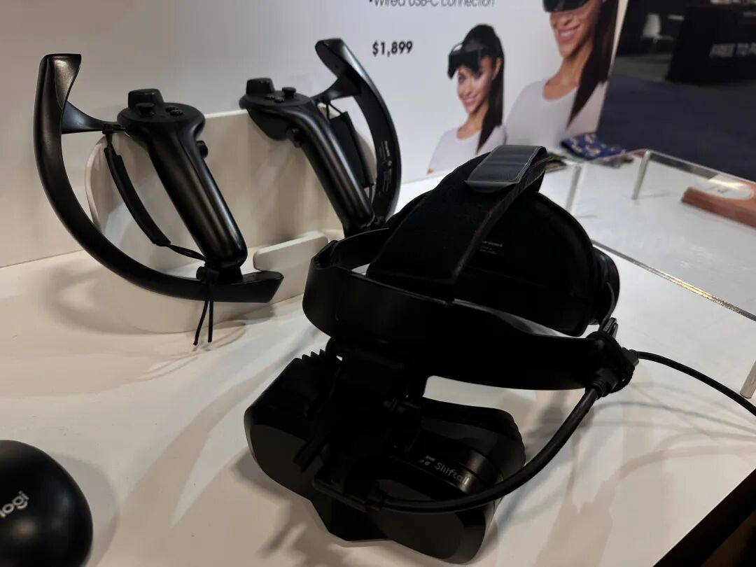 在会场上,Shiftall展示了旗下最新产品MeganeX 8K Mark Ⅱ,其搭载单眼4K微型OLED显示屏,支持HDR技术,刷新率90Hz,凭借深邃的黑色表现力与高还原度,可呈现极具沉浸感的影像效果。作为一款PC VR头显,整机重量仅179克,特别适合商务场景使用,且支持电动瞳距调节功能与无需摘镜的对焦机制,实现多人共享头显。