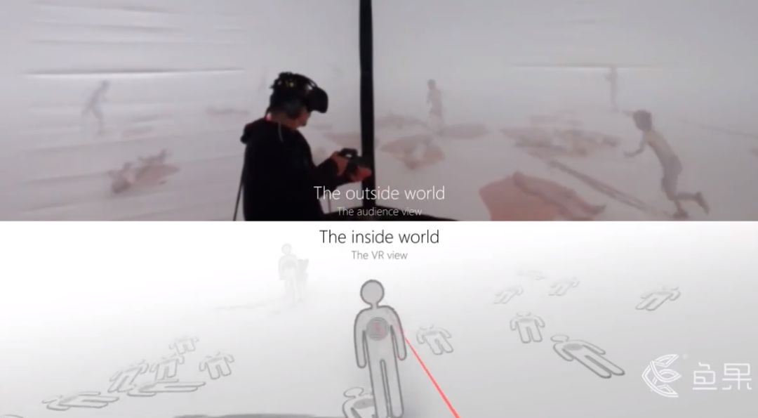 游戏很核心的观念是戏剧制造冲突、制造矛盾,所以团队使用了两台电脑分别运行了两套Linux的系统,保证时间和位置的同步,所以当玩家去射击角色方向的时候,内外的同步,会造成普通观众和VR玩家之间的误解,营造虚实冲突,让观众和玩家之间产生不一样的心理反应。