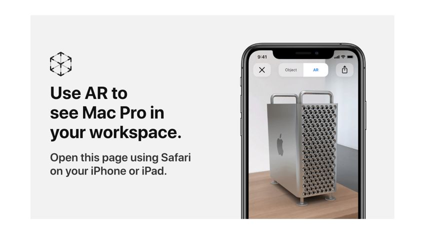 举个比较有代表性的,如苹果官网的Mac Pro AR展示就是通过 USDZ+AR QuickLook模型实现的。