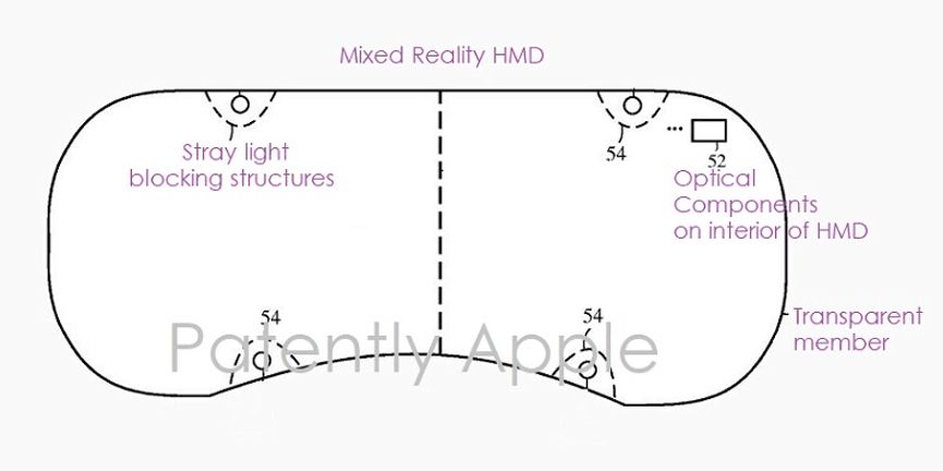 同年3月, USPTO公布了苹果公司最新的MR头戴式设备专利,其主要围绕前方盖板展开。具体来看,前侧盖板支持透明度调节,可在AR或VR模式下进行按需切换。如果你需要体验沉浸式VR内容,那么可以让前侧盖板变暗,把透光度变低;如果你需要体验AR内容,可以把透光度调高,画面也会变通透。