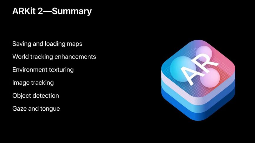 2018年WWDC,ARKit2.0版本正式推出,提供了图片识别、环境贴图、物体检测、多人AR等重要功能。