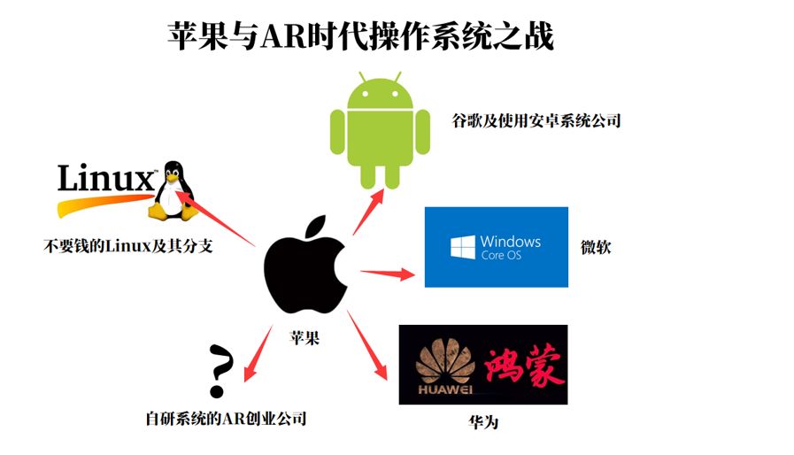 苹果在智能手机、AR眼镜以及AR技术方面的对手会有很多,在未来会更多,可能有些主角正在成长中甚至目前还没有诞生,所以就不一一赘述了。