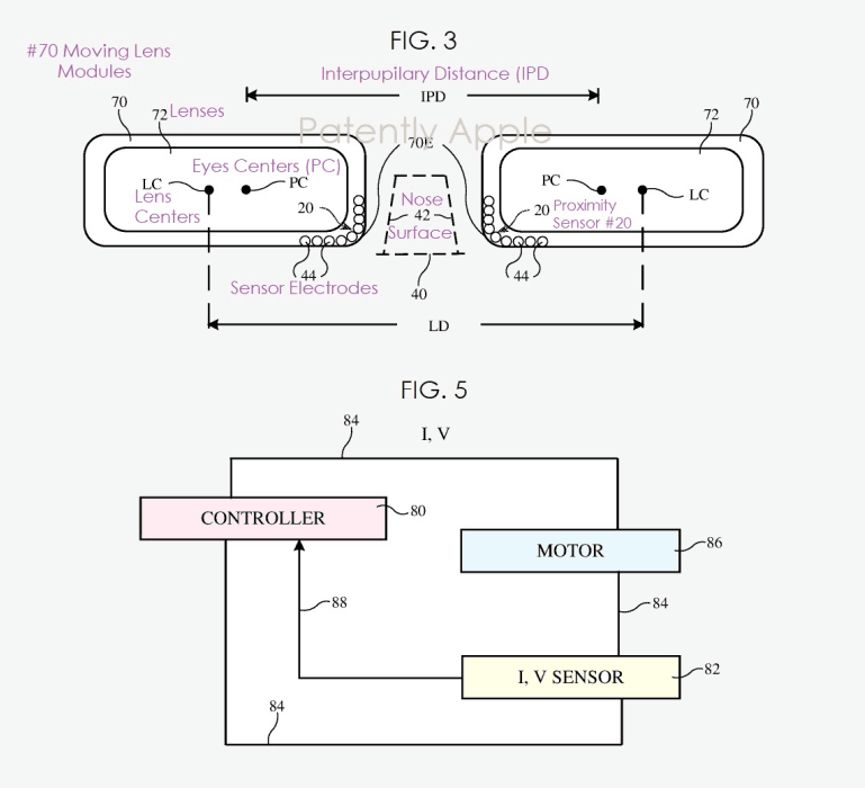 随即,苹果公司发布了第二项HMD发明专利,该专利指出:该设备可根据不同人的瞳距,面部轮廓等对透镜模组进行自适应调整,从而达到最佳的显示效果。可以满足家庭中爸爸、妈妈成年人,以及10岁以上的儿童,在不同人群之间进行自适应调整。而在专利描述中,描绘了一家人使用的场景。