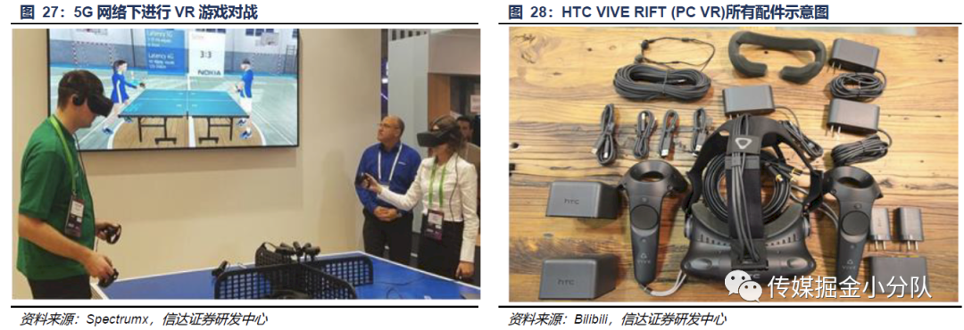 5G低时延特性使交互型VR网游体验更为顺畅,可以有效降低4G环境下的延迟。目前的旗舰级VR设备时延水平普遍在20ms以内,但普遍非常接近这个易产生晕眩感的延迟水平。如前文的Oculus Rift时延在19.3ms,而索尼推出的PSVR时延水平在18ms。而目前的4G的理论空口时延即达到了10ms,平均用户使用时延在40ms,如果采用4G进行VR网游,整体时延将超过60ms,这使得玩家极易产生晕眩感。19年MWC上诺基亚公司的展位设有一个配有摄像头的桌子,玩家们在一个虚拟的空间进行乒乓球对战,球和球桌都是虚拟的,这些摄像头可以追踪玩家的动作,并确定他们是否接住了球,这样戴了VR头显的玩家们就可以在虚拟空间中和对手一起打球了。4G环境下由于延迟存在,玩家多次接不到球,网络切换到了3.4到3.8GHz频段的5G网络后玩家可以顺利进行回击。