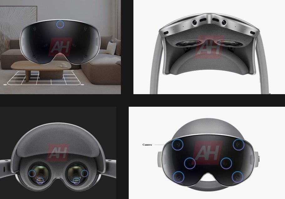 从渲染图可以看出Galaxy XR似乎配备了6个跟踪摄像头、2个彩色透视摄像头、1个深度传感器和4个内部眼动追踪摄像头。在6个追踪摄像头中,4个位于正面(位置与Quest 2、PlayStation VR2类似),另外2个位于底部朝下(类似Apple Vision Pro)。