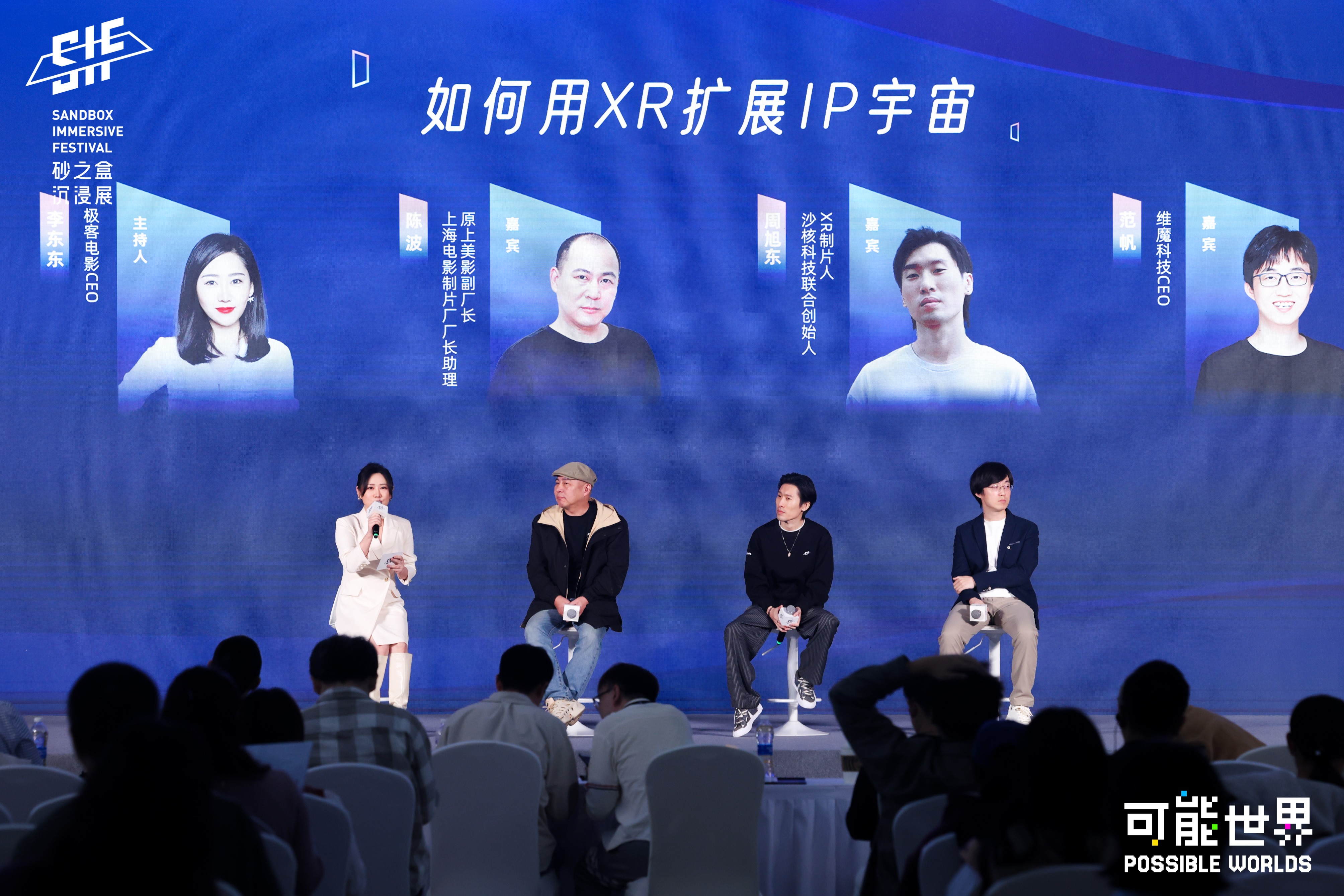 未来叙事峰会的最后一场圆桌对话由极客电影CEO李东东主持,三位嘉宾分别为上海电影制片厂厂长助理、原上美影副厂长陈波,沙核科技联合创始人、XR制片人周旭东,维魔科技CEO范帆。四位嘉宾围绕「如何用XR扩展IP宇宙」进行了热烈探讨。