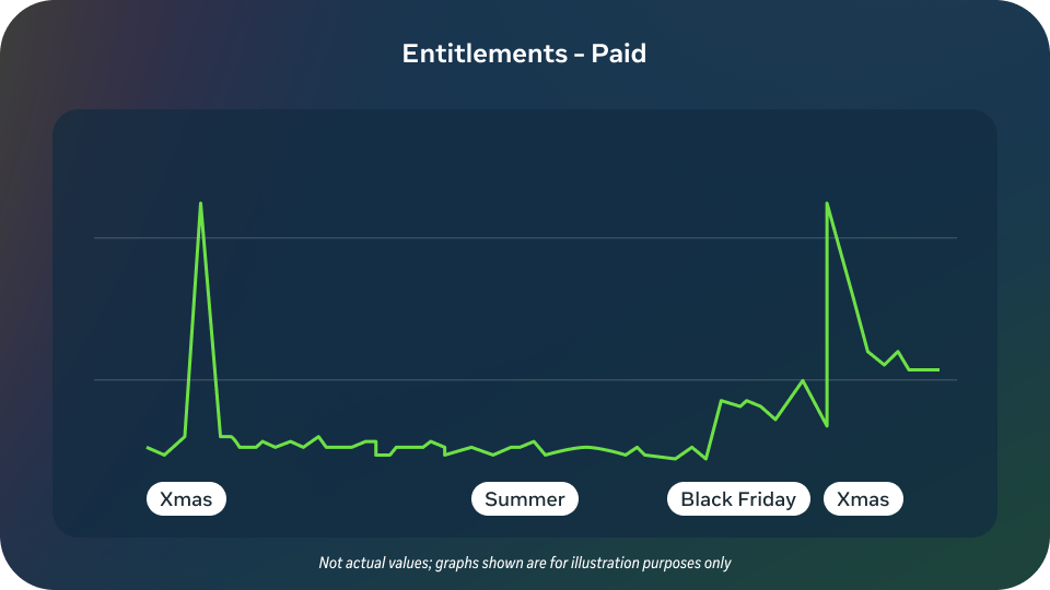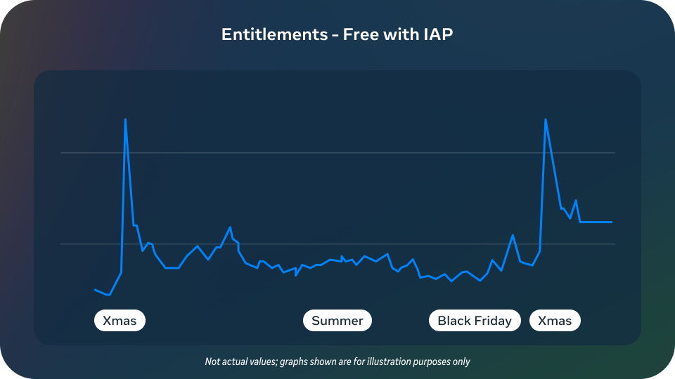 下方图表显示了全年付费应用和带有应用内购买的免费应用的可预测权益模式。