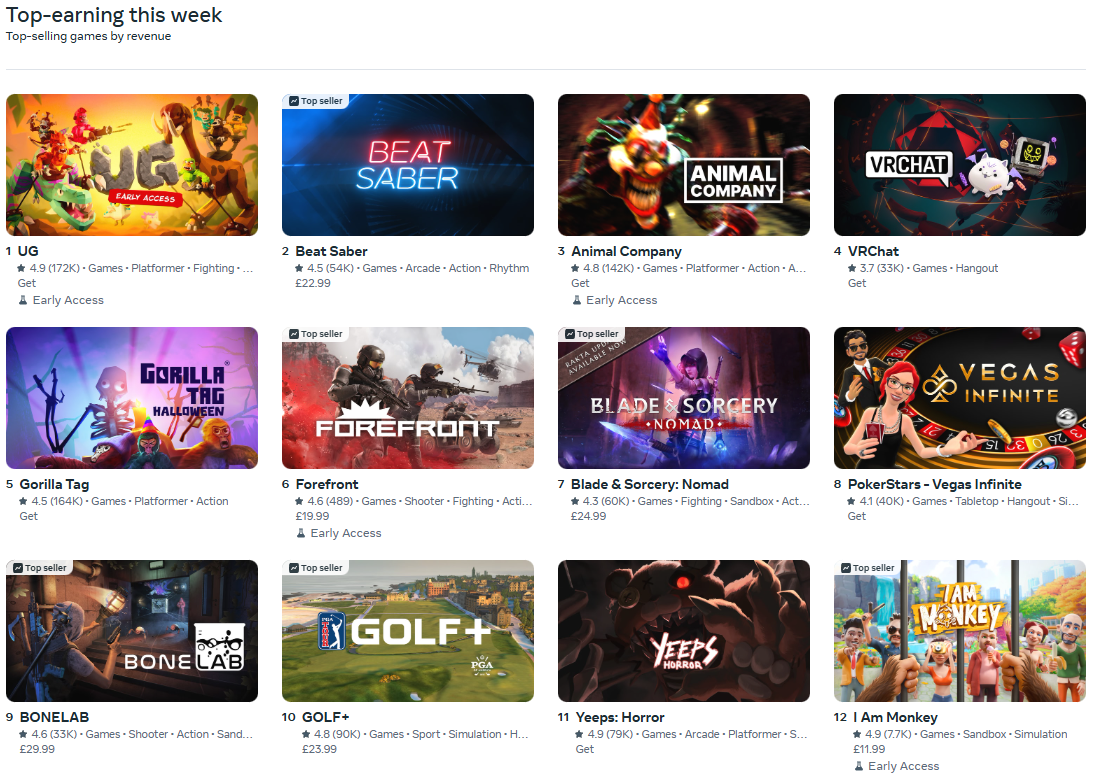 与此同时,成功的买断制VR游戏具备明显的长尾效应,即Quest商店的游戏在发售数年后仍持续畅销的倾向很强,这源于当前优质作品数量相对较少且容易被发现(可发现性高)。——详情可参看:Quest平台TOP 50畅销榜全解析:买断制VR内容的生存法则与困境