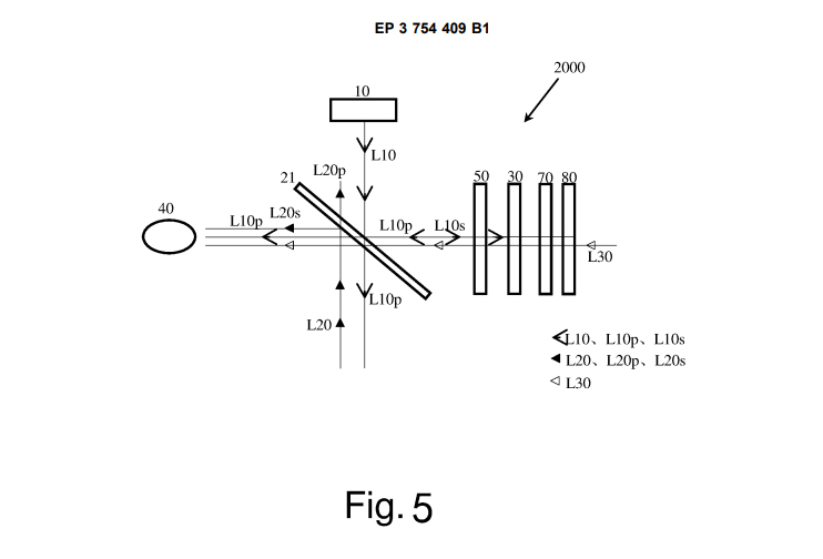 通过对比本次案件涉及的专利EP3754409B1和US9341843B2,专利中的21(偏振分光膜)对应微软专利的10204;50(1/4波片)对应微软专利的10210;30(半反射镜片)对应微软专利的10212,70(消漏用1/4波片)对应微软专利的10218;80(消漏用线偏振片)对应微软专利的10220。