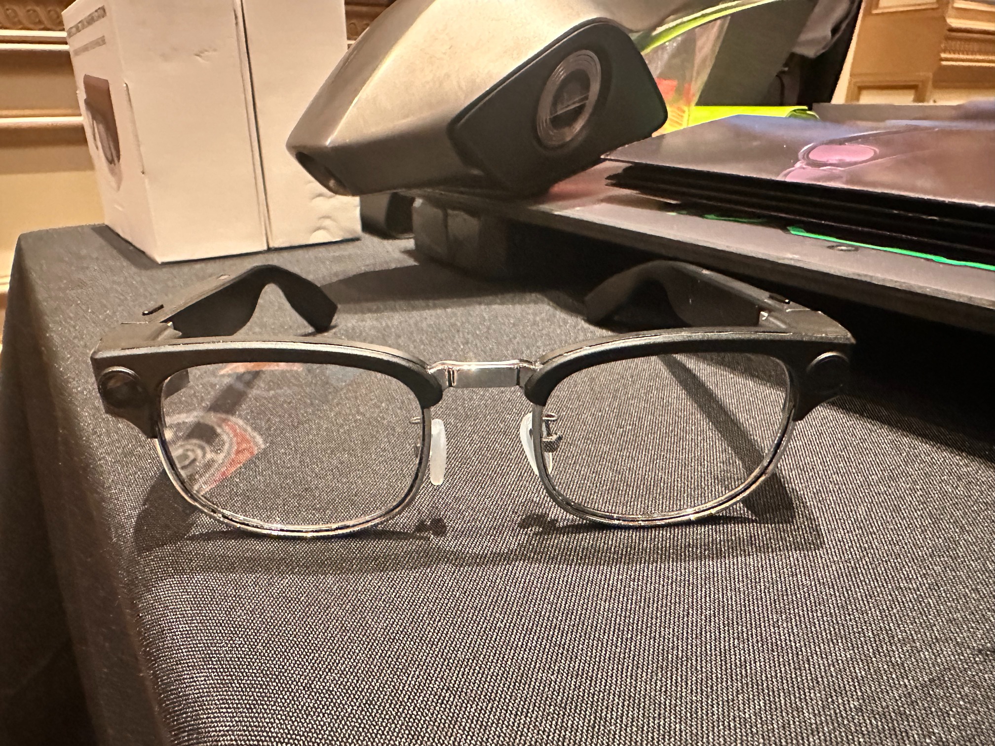 展台有一款名为SYNCGLASSES X1的AR眼镜新品,产品采用了碳化硅波导+全彩Micro-OLED的光学组合,据悉售价1000美金。