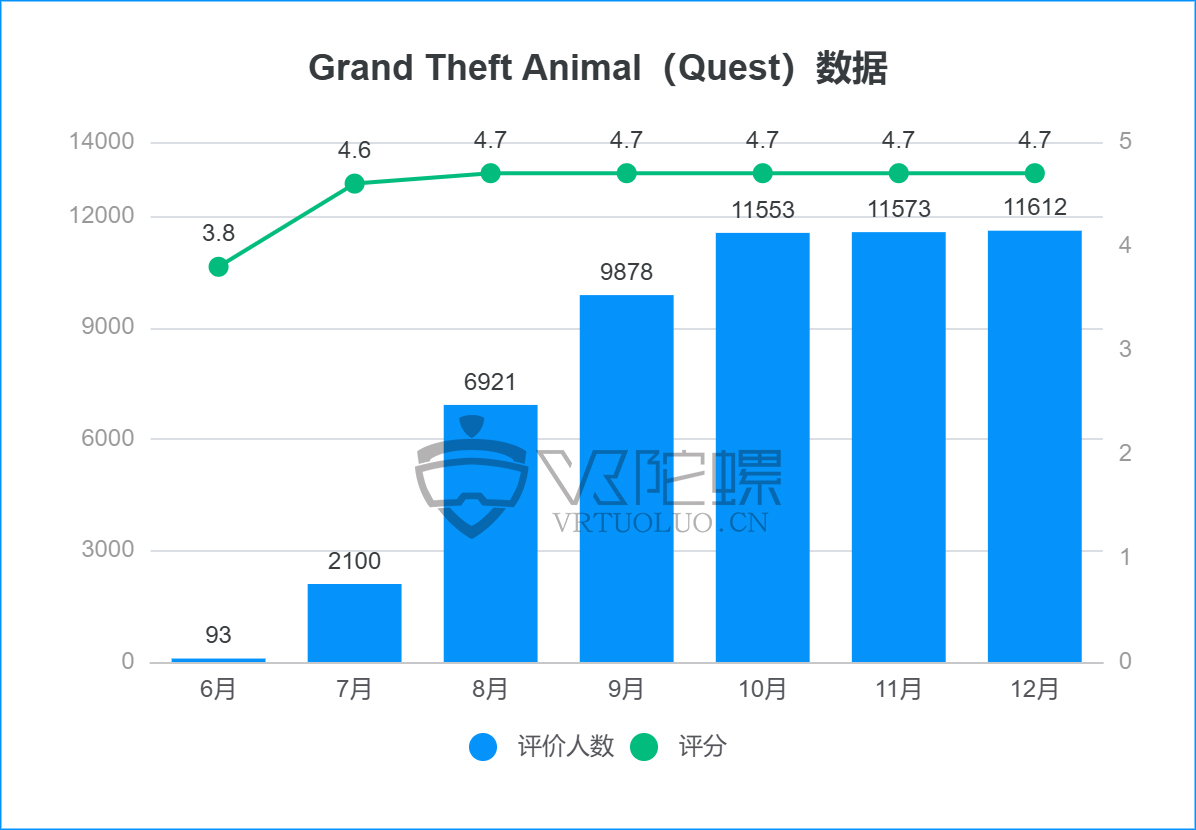 《Grand Theft Auto》是游戏界的经典系列,以3A级开放世界和高自由度的玩法而闻名,现阶段想在VR中做出这种规模的游戏不现实。这款《Grand Theft Animal》不仅从名字向《GTA》致敬,也将其最核心的玩法乐趣在VR的有限机能中还原出来。