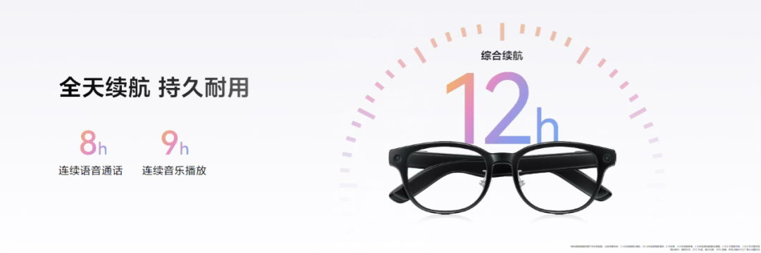 为了平衡高频计算与功耗,该眼镜在架构上将蓝牙 MCU 与 ISP(图像信号处理器)进行分离式设计,从而大幅延长了设备的续航表现。据介绍,总容量为 252 mAh 的双侧镜腿电池,单次充满可支持 9 小时连续音频播放、8 小时语音通话或 78 分钟的不间断直播。