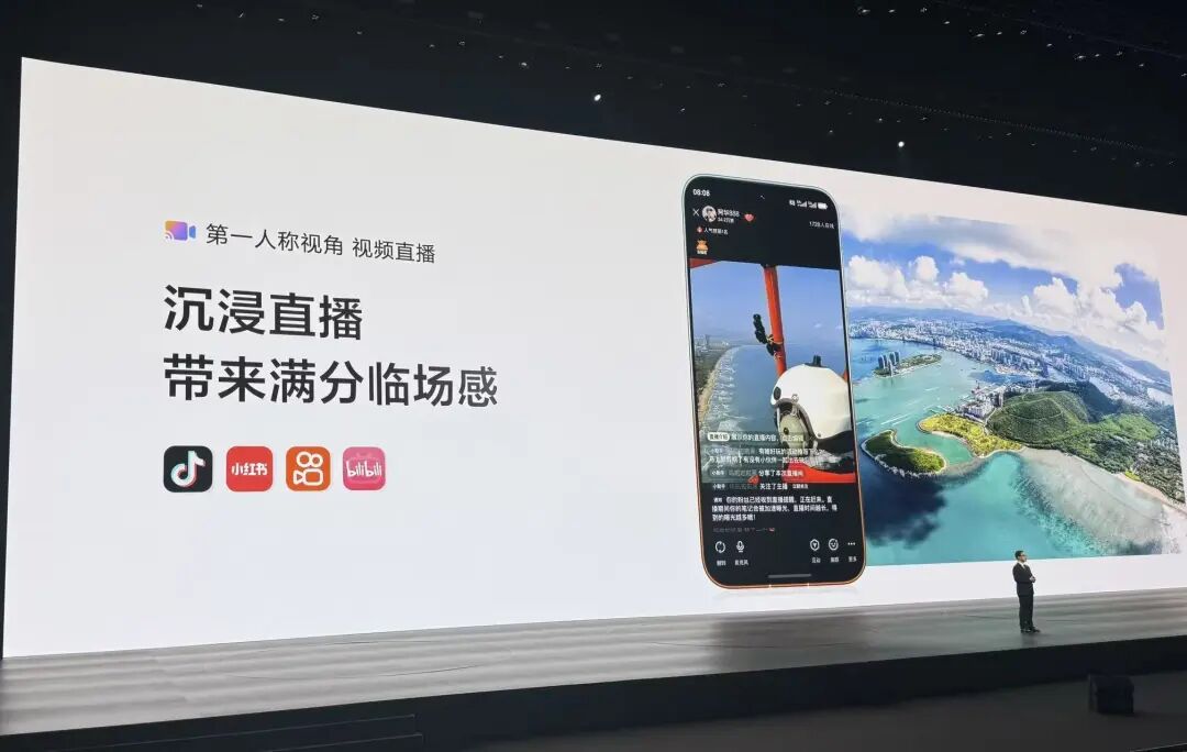 在场景体验上,产品除了支持智能信息通报、AI 多模态物体识别(如动植物百科、食物卡路里估算)以及视觉感知支付(支付宝)外,更是打通了多平台视频直播(抖音、快手)和第一人称视频通话功能。
