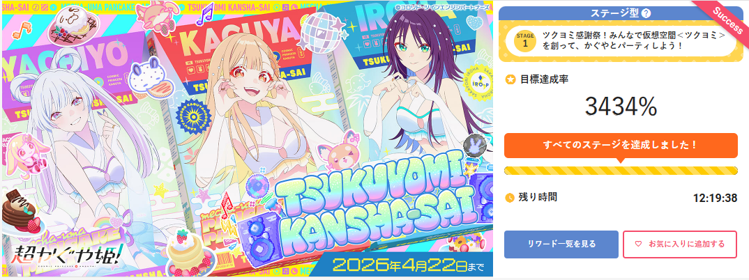为回馈粉丝并深化 VR 体验,官方发起了名为“月读感谢祭”的 VR 游戏开发及活动众筹,上线 1 小时即达成目标,截至 4 月 22 日,达成率已飙升至 3434%。